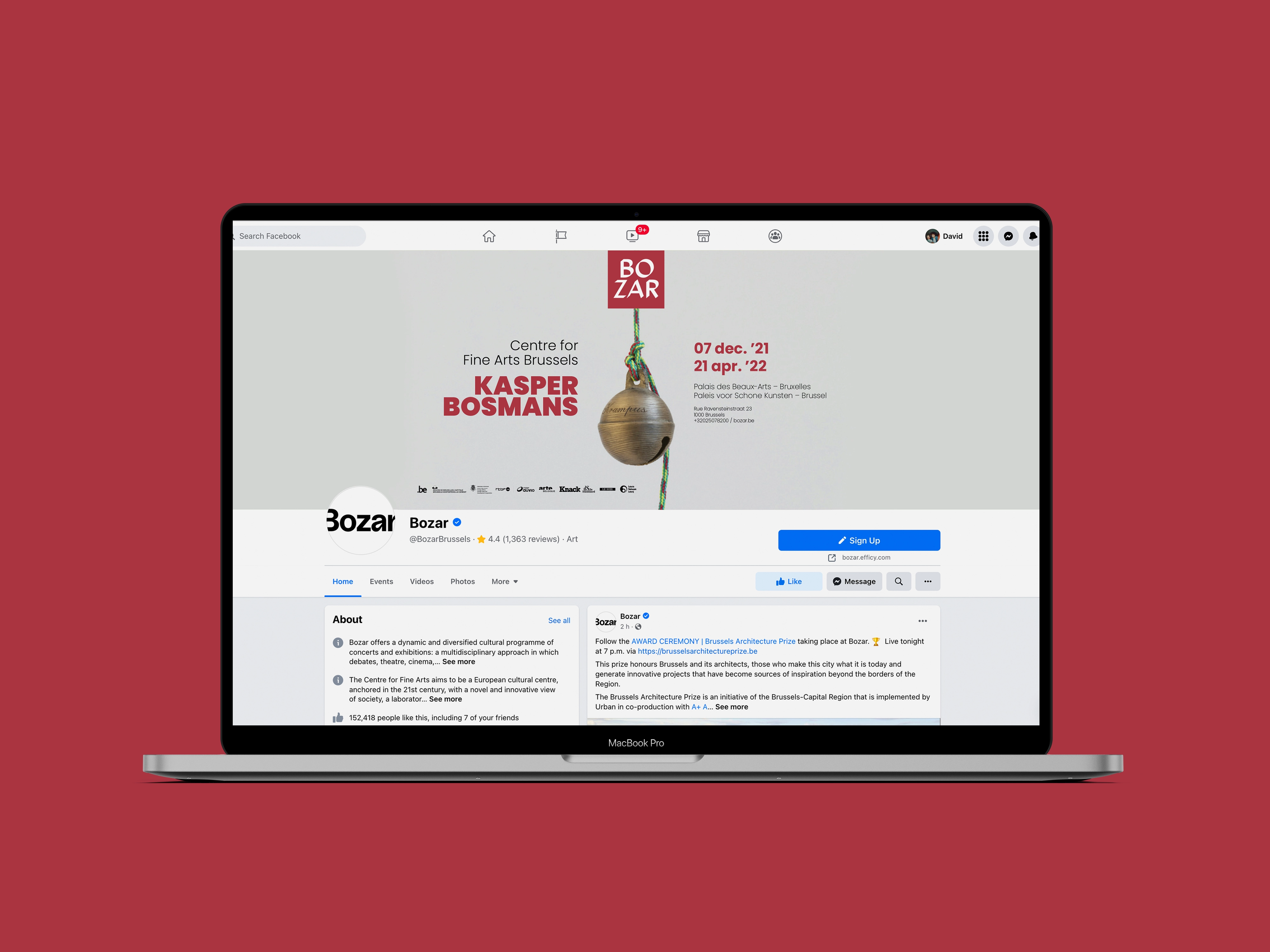 This project features posters made for the Center of Fine Arts in Brussels for an exhibition of Kasper Bosmans’ artwork. The aim was to highlight a key element of Bosmans' art and adapt it across various mediums.