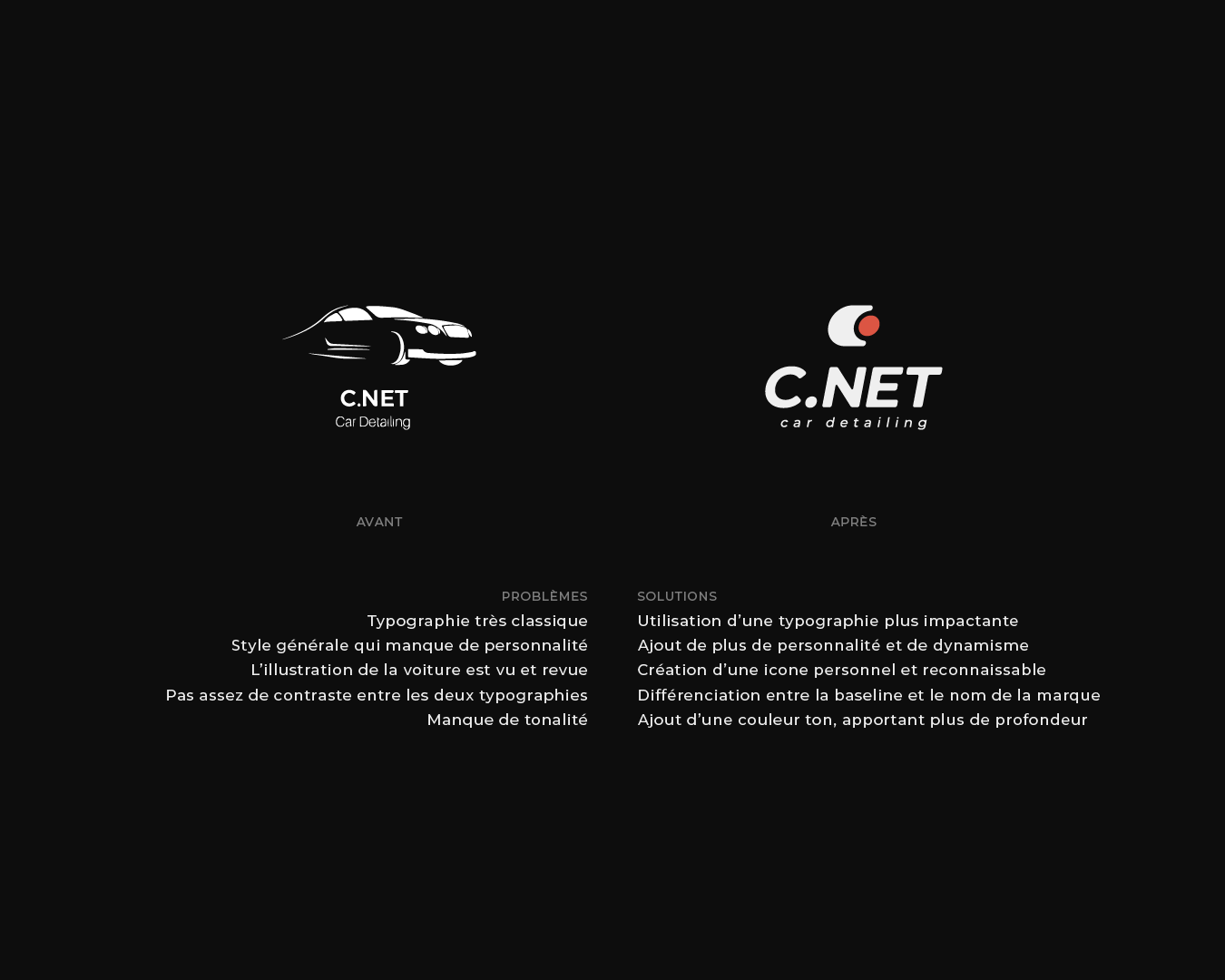I led the rebranding of C.NET Detailing, a French automotive detailing company, to elevate the way they present their services and to strengthen their market presence. My work focused on redefining their visual identity to better represent their premium cleaning solutions for both businesses and individuals. The refreshed brand now reflects C.NET Detailing's commitment to delivering high-quality, customized services that meet the diverse needs of its clientele.